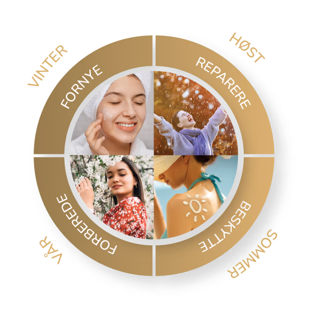 Hudens årshjul viser hva som er viktig å gjøre med huden i de ulike årstidene.